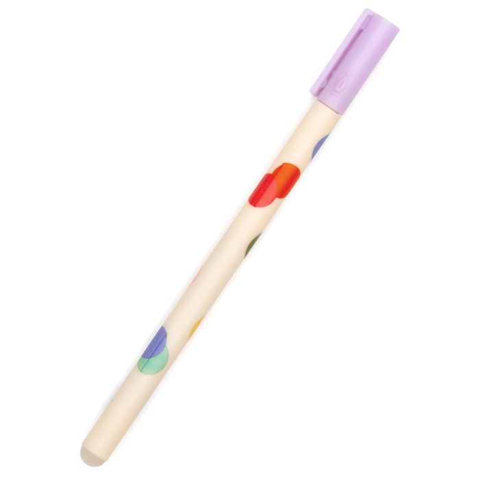 RADIERBARER STIFT Punkte. Farbenfroher Stift mit schwarzer Tinte. Mit der Gummispitze des Stiftes lässt sich die Tinte restlos ausradieren, ohne dass das Papier reißt. Material: PP, Metall, radierbare Tinte. Größe: 0,9 x 15 cm.