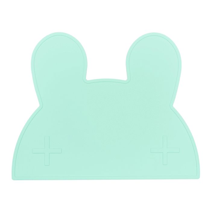 We Might Be Tiny Tischset Hase mint. Diese niedliche Unterlage (mit "+" Augen) ist perfekt für das kleine Kleckermäuschen an deinem Tisch! Hergestellt aus sehr hochwertigem, BPA-freiem, lebensmittelechtem Silikon. Die Tischsets sind rutschfest, spülmaschinenfest und beschützen deinen Esstisch zuverlässig. Größe: 48 x 38 cm.