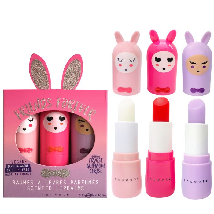 inuwet 3 Lip Balms FRIENDS FOREVER Trio Glitter fuchsia