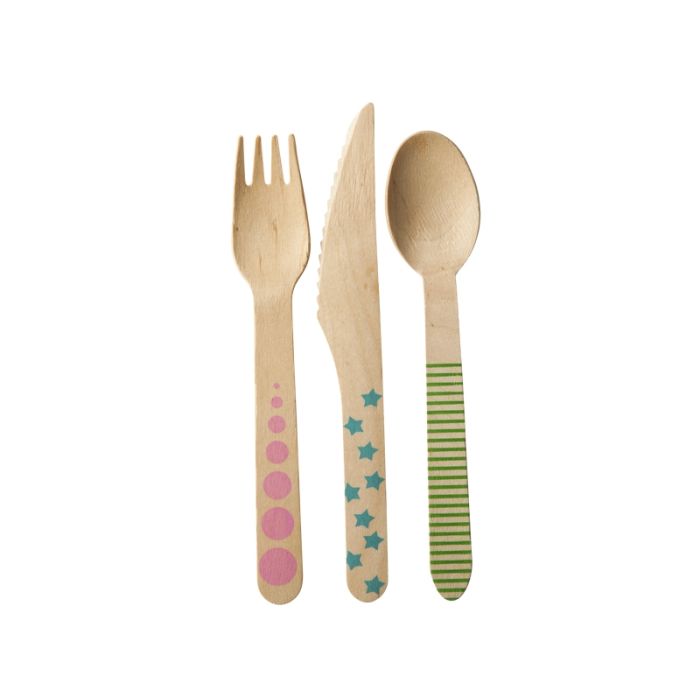 RICE Disposable cutlery. The set of 24 pcs contains 8 forks, 8 spoons and 8 knives which are made of birch wood. Ideal for wedding, bridal shower, baby shower, birthday party or any special event. They are intended for one time use. Size: 15,5-16,5 cm
